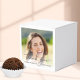 Modern graduation party thank you favor boxes featuring two photos of the graduate overlayed with "thank you" in an elegant script and their name and class year in simple typography.