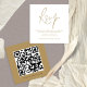 Script QR Code Gold White Wedding RSVP enclosure making it convenient for your guests to reply by scanning your QR code leading to your wedding website reply page. A MINI size 2.5" square to enclose with your invitations. RSVP is in an elegant set script and easily personalise the rest of the words to your own and replace the sample QR code on the back with yours. Search online for “QR code generator” and lots are available for free. You can also change text and background colors if you wish via the customise further option to match your wedding color theme. If you need any assistance with this please message me.