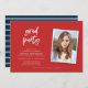 Yes, you can print on the back of your invitation for free! Most designs already have a corresponding design on the back that can be personalized using the Design Tool and going to Layers. This is a great way to communicate more information or further personalize your Script Red And Blue Photo Graduation Party Invitation. The option is really up to you.