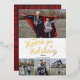 Script Red Plaid New Home for Holidays Photo Foil Holiday Card