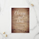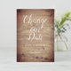 This script rustic change our date card features an elegant script above your details set in elegant typography on a rustic wood panels background. The reverse has additional details, including your website, with your return address and space for your recipient's address. Designed by Thisisnotme©