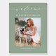Welcome guests to your event with this customizable sage green graduation welcome sign. It features an elegant script, and simple typography. Personalize by adding your own details. This photo graduation welcome sign is perfect for any graduation theme. Other colors are available.