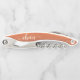 A wine corkscrew bottle opener featuring a terra cotta design with a script "cheers" text. Beautiful for a birthday, a bridal party or other occasion.