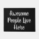 Black Door Mat with white script text - "Awesome people Live Here" Funny Quote doormats