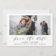 A beautiful multi photo Script text elegant modern wedding save the date card, perfect for sending holiday wishes to family and friends. Customise the color of the backer to personalise your card. Part of a collection.
