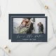 A beautiful multi photo Script text elegant modern wedding save the date card, perfect for sending holiday wishes to family and friends. Customise the color of the backer to personalise your card. Part of a collection.