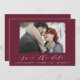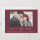 A beautiful photo Script text elegant modern wedding save the date card, perfect for sending holiday wishes to family and friends. Customise the color of the backer to personalise your card. Part of a collection.