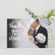 An elegant white script thank you card featuring your favourite wedding photo, name and special date. The reverse features gold hearts confetti and you can personalise with your special thank you message. A perfect way to say thank you! Designed by Thisisnotme©