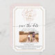 "Script Typography Love in Air Gold Couples Shower Invitation." Calligraphy script hand lettered by Audrey Jeanne then rendered into a gold glitter dimensional look is surrounded by pink scroll swirls in the shape of a heart. The reverse side is a hand painted modern watercolor wash in very pale blush pink. All artwork was created by internationally licensed artist and designer, Audrey Jeanne Roberts, copyright.