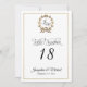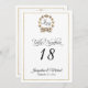 "Script Typography Monogram Gold Table Numbers Wedding Reception Table Number Cards." Vintage gold Laurel leaf wreath with typography text layout in gold glitter look with a white background. Art by internationally licensed artist and designer, Audrey Jeanne Roberts, copyright.
