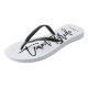 The flip flop is great quality and comfortable. It arrived on time and fit perfectly. I got this for oldest daughter who is my Junior Maid of Honor and she adored them. The printing was centered and just as I expected and hoped. Perfect!