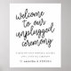 Planning an unplugged ceremony but not sure what wording to use to let your wedding guests know to put away their phones? This chic poster takes care of it for you in style. Elegant and modern black and white design features "welcome to our unplugged ceremony" in handwritten style script typography with your names and custom message beneath. Shown with "please put away your phones and cameras until after the ceremony."