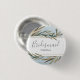 A beautiful button for your bridesmaid featuring "bridesmaid" in a script font and her name below all framed by a handpainted watercolor botanical and set against a weathered wood blue background. Easily change "bridesmaid" to Maid of Honor, Mother of the Bride, Groom, etc. Simple and Elegant with a rustic chic feel - perfect for so many of today's wedding styles.