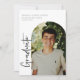 Modern scripted "graduate", arch frame photo graduation announcement/invitation.