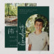 Modern scripted "graduate", arch frame photo graduation announcement/invitation. Features, white typography on forest green backgrounds.