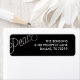 A scripted silver faux foil peace bleeds off this return address label on this holiday fresh, modern, and clean design. Personalize the design with your own name and address. The background color is also editable through the "customize it" button.
