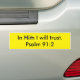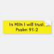 Yellow bumper sticker with Psalm 91:2 and Ichthus (secret symbol Early Christians used to find each other and places of worship) imposed on "Him."