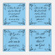 Set of four square coasters with scriptures and corner flourishes.