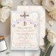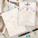 Scripture Floral Cross Damask Baby Girl Baptism Invitation