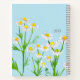 A personalized custom name botanical scripture journal featuring Roman chamomile in sketched with pencil and painted with watercolor on a light turquoise blue background. In Floriography, Language of Flowers, chamomile represents patience, abundance, and fortitude. You can edit or remove the text to fit your needs. Lovely gift for someone special!
