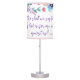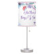 The lamp looks exactly like the picture, bright and colorful. The lamp shade is plastic not what I expected, however I love it! The printing is clear and the name can easily be read.