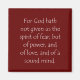 2 Timothy 1 7. Get yourself re-verse-d to faith with this inspiring bible verse or scripture quote to find christian healing strength, encouragement and powerful uplifting to overcome hard times. Show and wear beautiful religious wisdom of love, hope, peace, joy and happiness to comfort yourself and to plant a seed of belief in your spirit or use it as a gift for the ones you love. Amen.