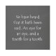 Matthew 5 38. Get yourself re-verse-d to faith with this inspiring bible verse or scripture quote to find christian healing strength, encouragement and powerful uplifting to overcome hard times. Show and wear beautiful religious wisdom of love, hope, peace, joy and happiness to comfort yourself and to plant a seed of belief in your spirit or use it as a gift for the ones you love. Amen.