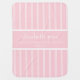 Sweet baby blanket with scripture verse from Luke 1:37, in pale pink with white pinstripes. Personalize with child's name. On the pink banner below the name is the following verse: For with God nothing shall be impossible. Back of blanket has the same pink/white pinstripe design. All text on the blanket can be modified/personalized. Sweet custom gift of faith for the new baby.