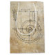 A vintage scroll column architectural drawing with a vintage grunge look background.