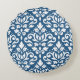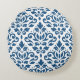 Scroll Damask 2Way Lg Ptn Dk Blue on White Round Pillow