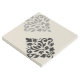 Scroll and leaf damask repeat design in black and grey detail on a cream color background.