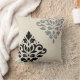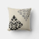 Scroll Damask Art I Black Grey Cream Throw Pillow