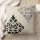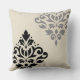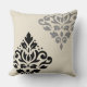 Scroll Damask Art I Black Grey Cream Throw Pillow