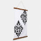Scroll and leaf damask in black detail on a white background in a modern style art print.