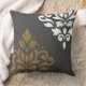 Scroll Damask Art I Gold & White on Grey Throw Pillow
