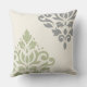 Scroll Damask Art I Green Gray Cream Throw Pillow