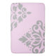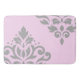 Scroll Damask Art I Grey on Pink Bathroom Mat