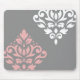 Scroll Damask Art I Pink White Gray Mouse Pad