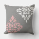 Scroll Damask Art I Pink White Gray Throw Pillow
