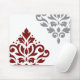 Scroll Damask Art I Red & Grey on White Mouse Pad