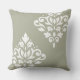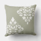 Scroll Damask Art I White on Green Throw Pillow