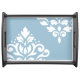 Scroll and leaf damask with white detail on a light blue background in a modern style art print.