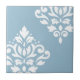 Scroll Damask Art I White on Light Blue Tile