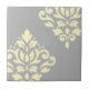 Scroll Damask Art I Yellow on Grey Ceramic Tile