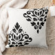 Scroll and leaf damask with black detail on a white background in a modern style art print.