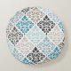 Scroll Damask Big Pattern Teals Browns White Round Pillow