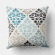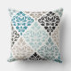 Scroll Damask Big Pattern Teals Browns White Throw Pillow
