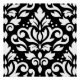 Scroll and leaf damask in a vintage style large patterned design, with white detail on a black background.