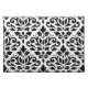 Scroll and leaf damask in a vintage style large pattern, with black detail on a white background.