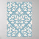 Scroll Damask Large Pattern Cream on Blue Poster